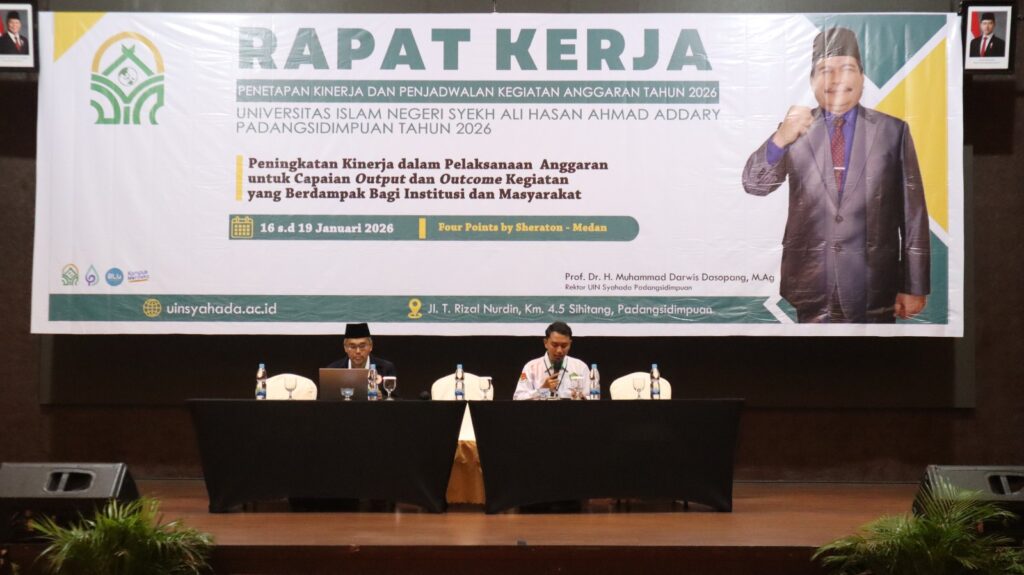 Medan, 16 Januari 2025. Lembaga Penelitian dan Pengabdian kepada Masyarakat (LPPM) UIN Syekh Ali Hasan Ahmad Addary Padangsidimpuan mengikuti kegiatan Rapat Kerja Penetapan Kinerja dan Penjadwalan Kegiatan Anggaran Tahun 2026 yang diselenggarakan dalam rangka penguatan perencanaan dan pelaksanaan anggaran yang berorientasi pada capaian output dan outcome kegiatan yang berdampak bagi institusi dan masyarakat.
