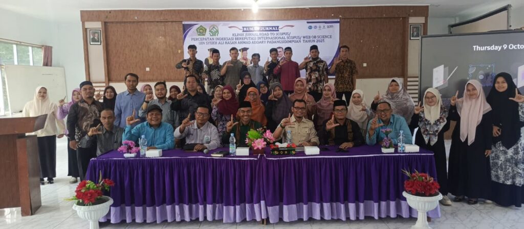 Padangsidimpuan 9 Oktober 2025. Dalam rangka meningkatkan kualitas dan reputasi publikasi ilmiah di lingkungan Universitas Islam Negeri (UIN) Syekh Ali Hasan Ahmad Addary Padangsidimpuan, Lembaga Penelitian dan Pengabdian kepada Masyarakat (LPPM) menyelenggarakan kegiatan *“Klinik Peningkatan Kualitas Jurnal Internasional Bereputasi Scopus dan WoS”. Kegiatan ini dilaksanakan sebagai langkah strategis menuju terwujudnya cita-cita agar jurnal-jurnal di lingkungan UIN Syekh Ali Hasan Ahmad Addary Padangsidimpuan dapat terindeks pada pangkalan data internasional bereputasi seperti *Scopus dan Web of Science (WoS).